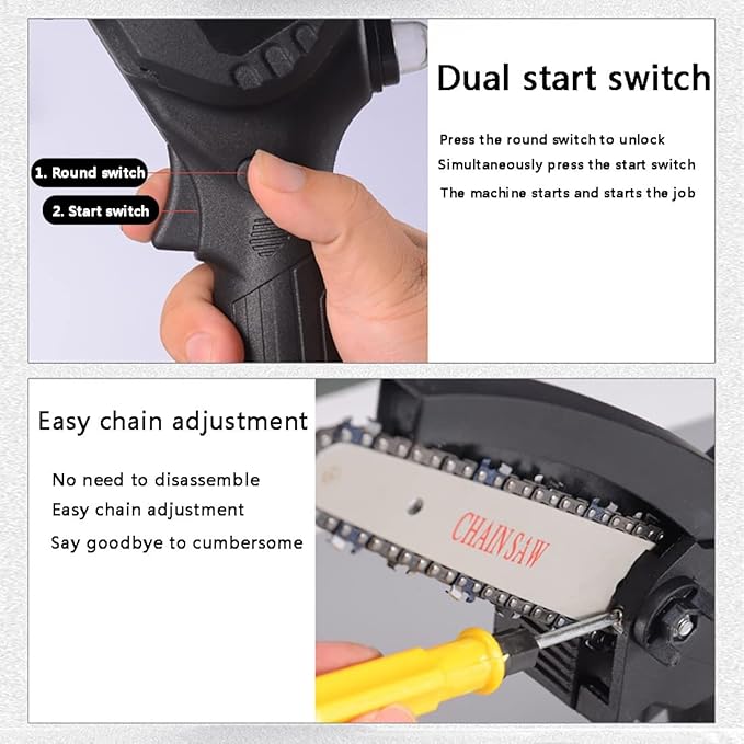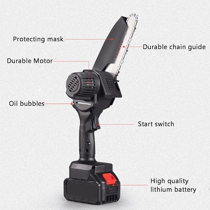 Haz trabajos de corte rápido y sin esfuerzo con esta mini motosierra inalámbrica 48V, ideal para podar ramas, cortar leña, jardinería y bricolaje. Gracias a su diseño compacto y ergonómico, puedes manejarla fácilmente con una mano. Sin cables, sin complicaciones.