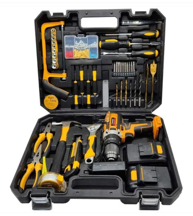 Haz tus trabajos en casa o en el taller como un profesional con este set completo de herramientas y taladro recargable. Compacto, portátil y poderoso, este kit te permite perforar, atornillar y reparar sin esfuerzo. Ideal para electricistas, técnicos, manitas o uso doméstico.