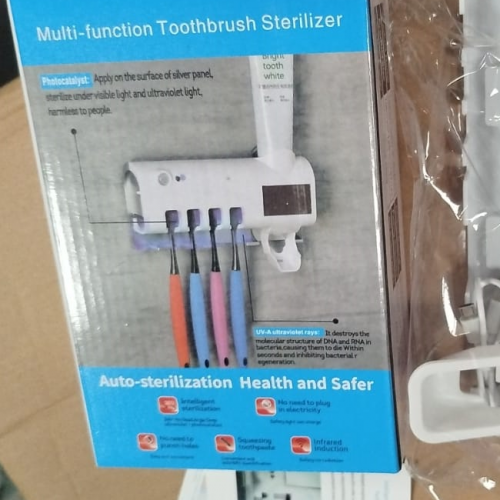 Este práctico dispositivo 3 en 1 combina tecnología y limpieza en un solo producto. Esteriliza tus cepillos con luz UV, los mantiene organizados y además dispensa la pasta automáticamente sin contacto. Ideal para toda la familia y perfecto para mantener el baño limpio y ordenado.