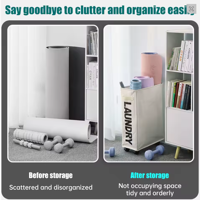 Cesta de lavandería con ruedas, cesta de lavandería con ruedas, cesta de almacenamiento plegable impermeable para esterilla de Yoga, bolsa de almacenamiento de ropa sucia