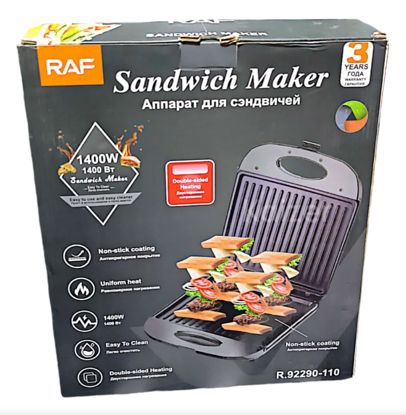 🥪 SANDUCHERA RAF 1400W – RÁPIDA, POTENTE Y PRÁCTICA
